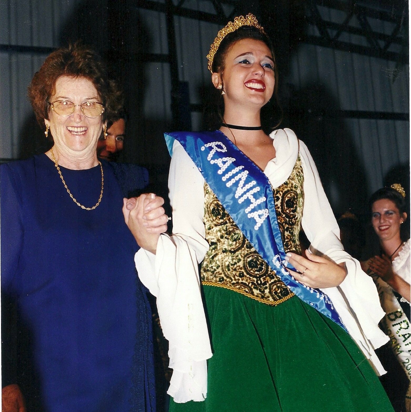 Na foto está a Rainha de 2000, Cristiane Prospero e Ninha Canavezi, que entregou a ela a coroa e a faixa
